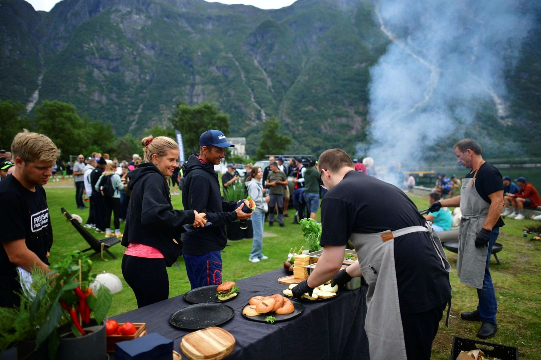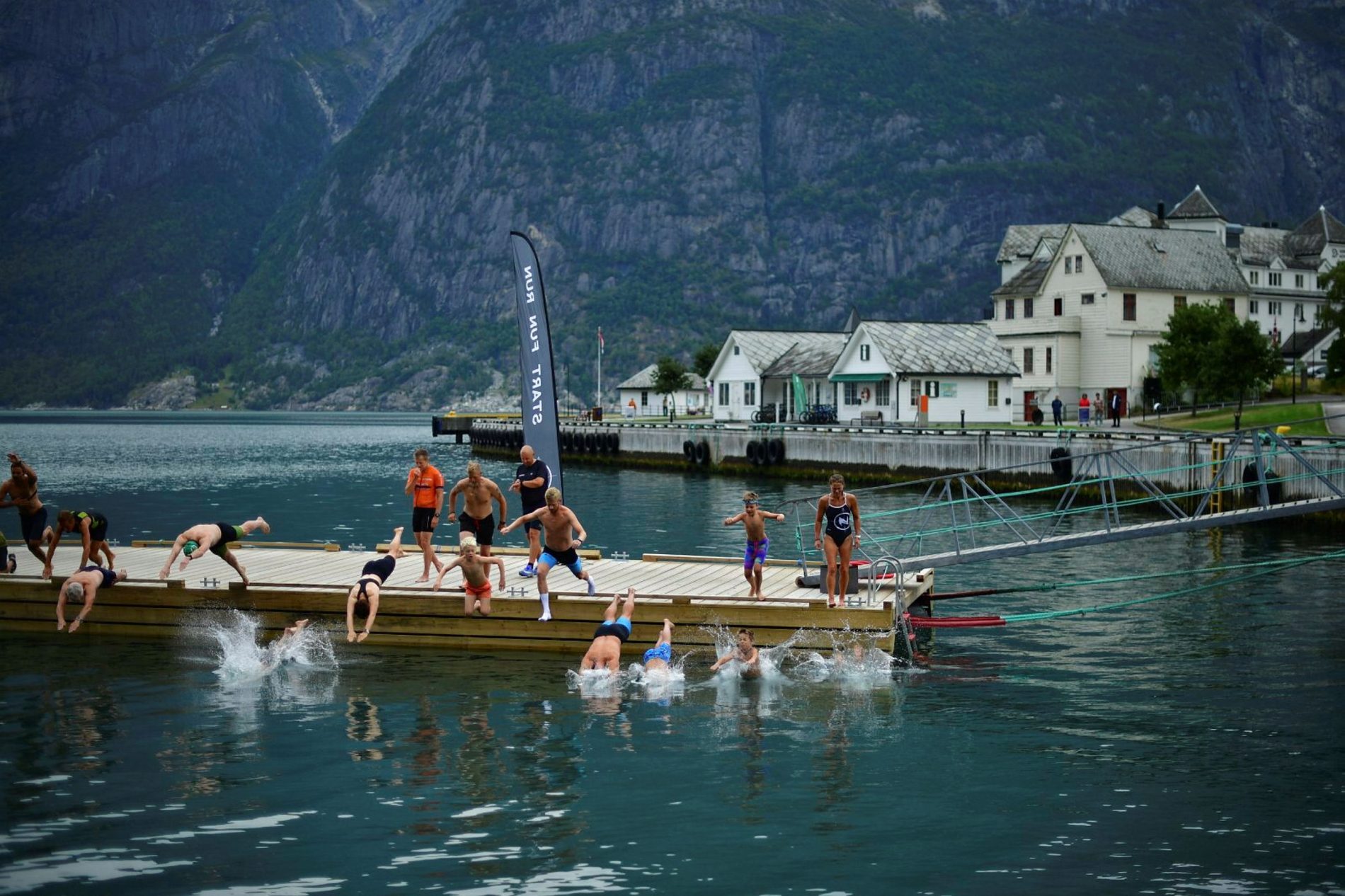 Pas mal de choses à faire. Nous commençons par aller nous défroisser les jambes avec Jean sur 5kms. Les jambes sont légères. Petit déjeuner et regroupement de l’équipe pour descendre à Eidfjord. L’arrivée sur la jetée est chargée d’émotion. Je suis au milieu d’un paysage que je connais par cœur via les photos et les vidéos, MAIS là, c’est moi qui y suit pour de vrai. C’est d’ores et déjà une forme d’aboutissement. Tout l’enjeu est de profiter de l’instant tout en restant concentré sur l’objectif.
