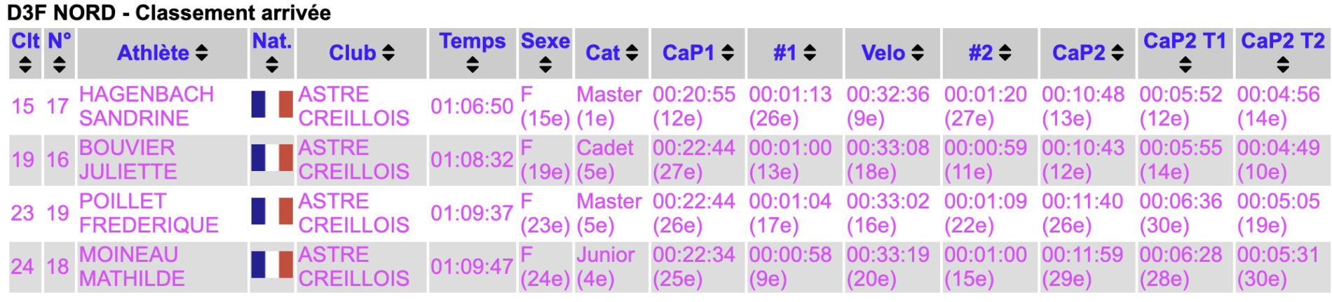 Bravo à nos féminines qui se sont bien battues avec leurs armes malgré le manque de spécifique et un grand merci à nos deux jeunes Juliette & Mathilde qui ont enchainés le sélectif France Aquathlon à Sangatte samedi et aujourd’hui le duathlon avec leurs coéquipières.