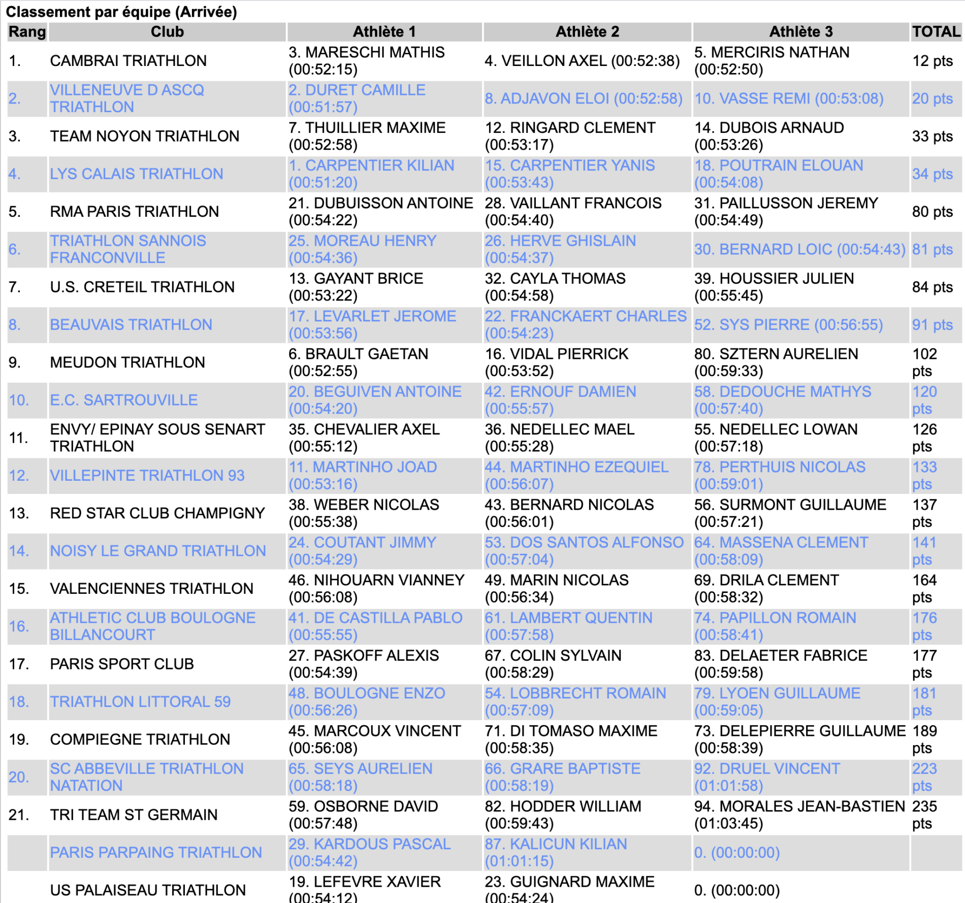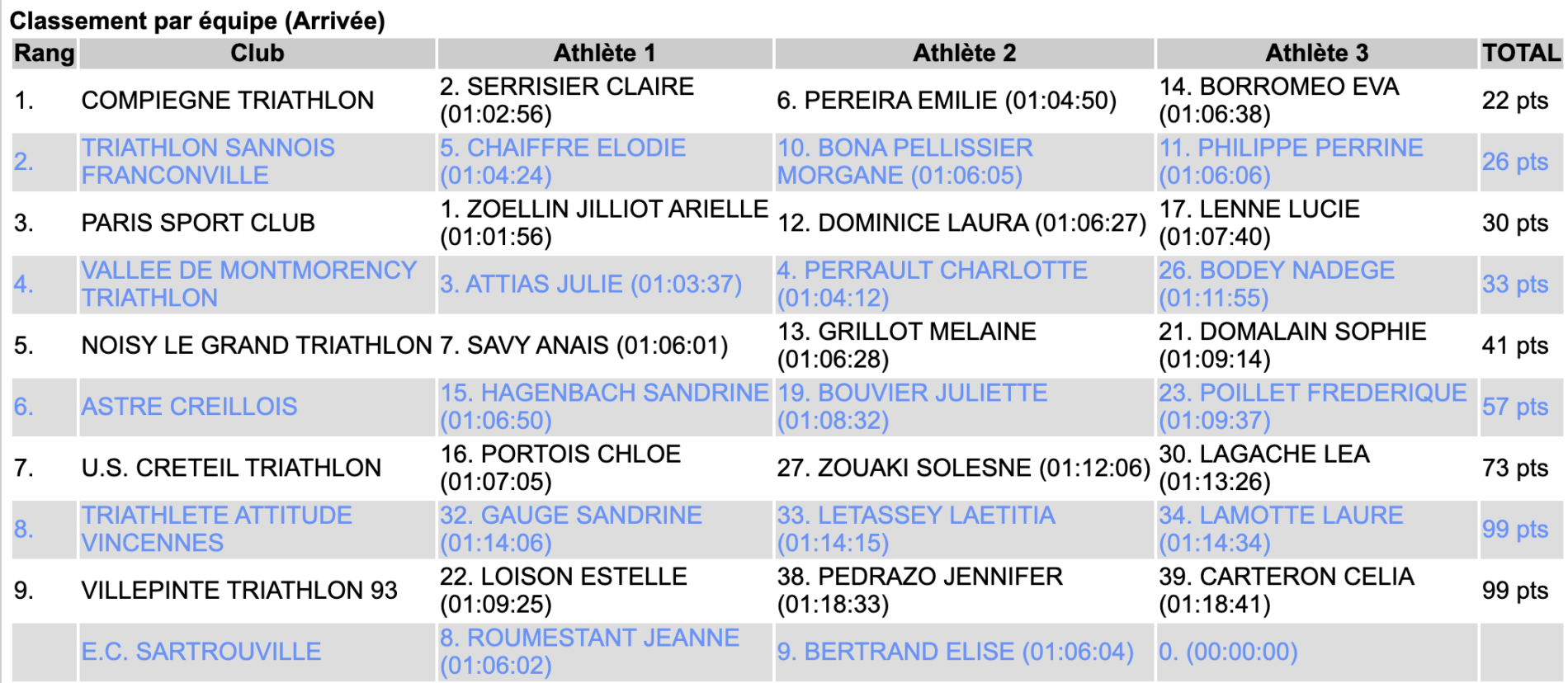 - VILLEPINTE TRIATHLON 93 : 99 pts
