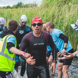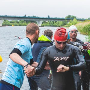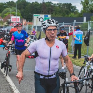 Florent, Président de l’Astre Creillois et Arbitre pour la ligue de Triathlon des Hauts de France, avec Stéphane Lecas, DTN de la FFtri et des arbitres qui ont officié lors du Triathlon de l’Arc, organisé par le club de Compiegne Triathlon